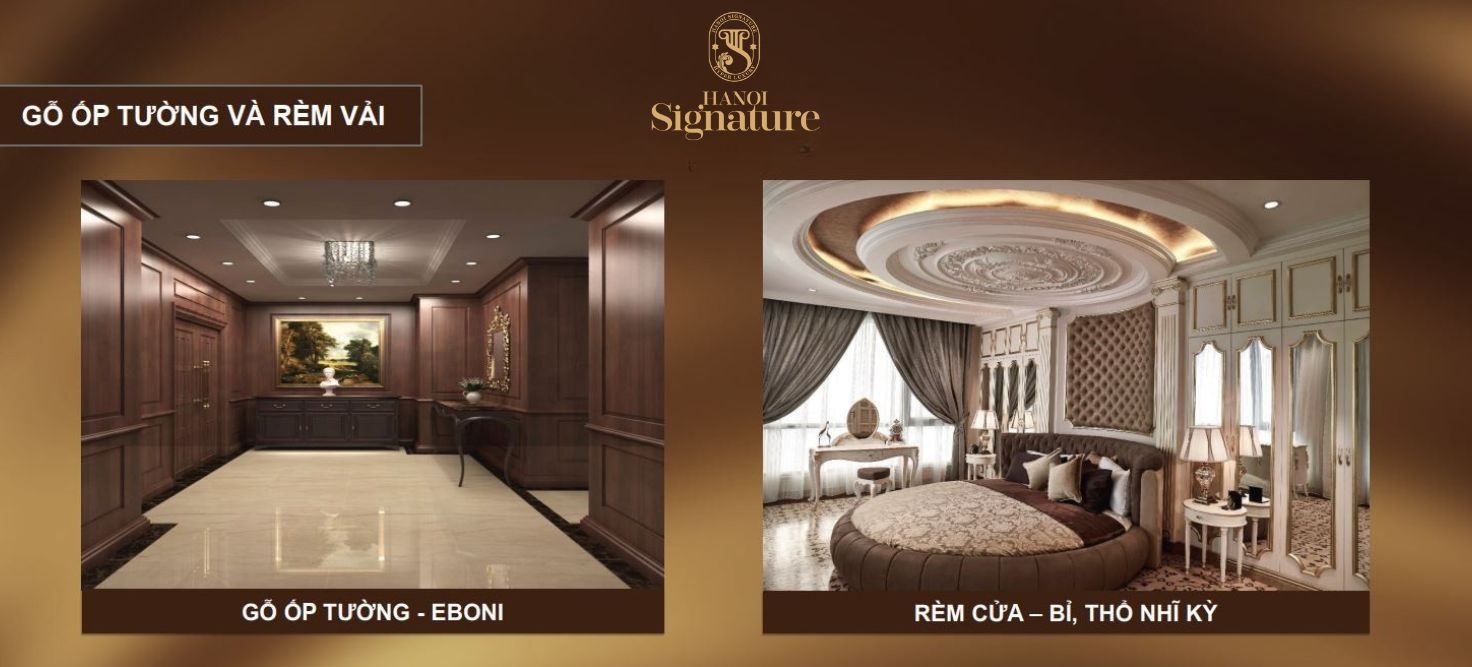 • Sử dụng nguyên liệu gỗ tự nhiên Solid 100%, đan xen các hoạ tiết sơn mài trắng, chi tiết dát vàng 24k trên ba màu sắc chủ đạo gam tím, trắng sáng và vàng, tạo ra một không gian nội thất sang trọng đến choáng ngợp